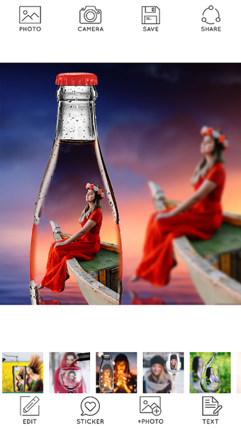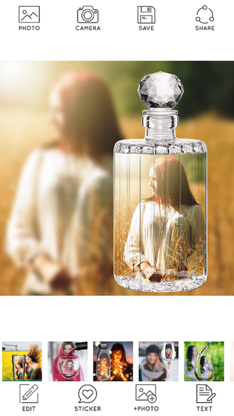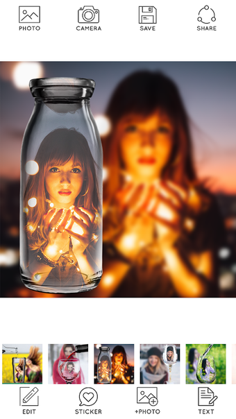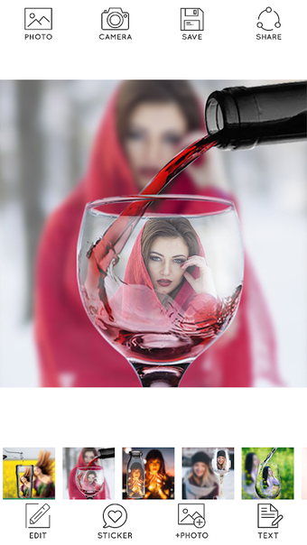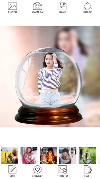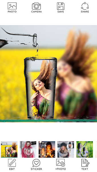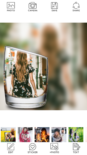 Ứng dụng này cho phép bạn làm mờ nền và chọn từ các phong cách khác nhau. Bạn thậm chí có thể thêm nhãn dán và văn bản. Bạn có thể thêm nhiều ảnh và chọn từ nhiều đồ vật khác nhau, chẳng hạn như kính, thức ăn, động vật, v.v.